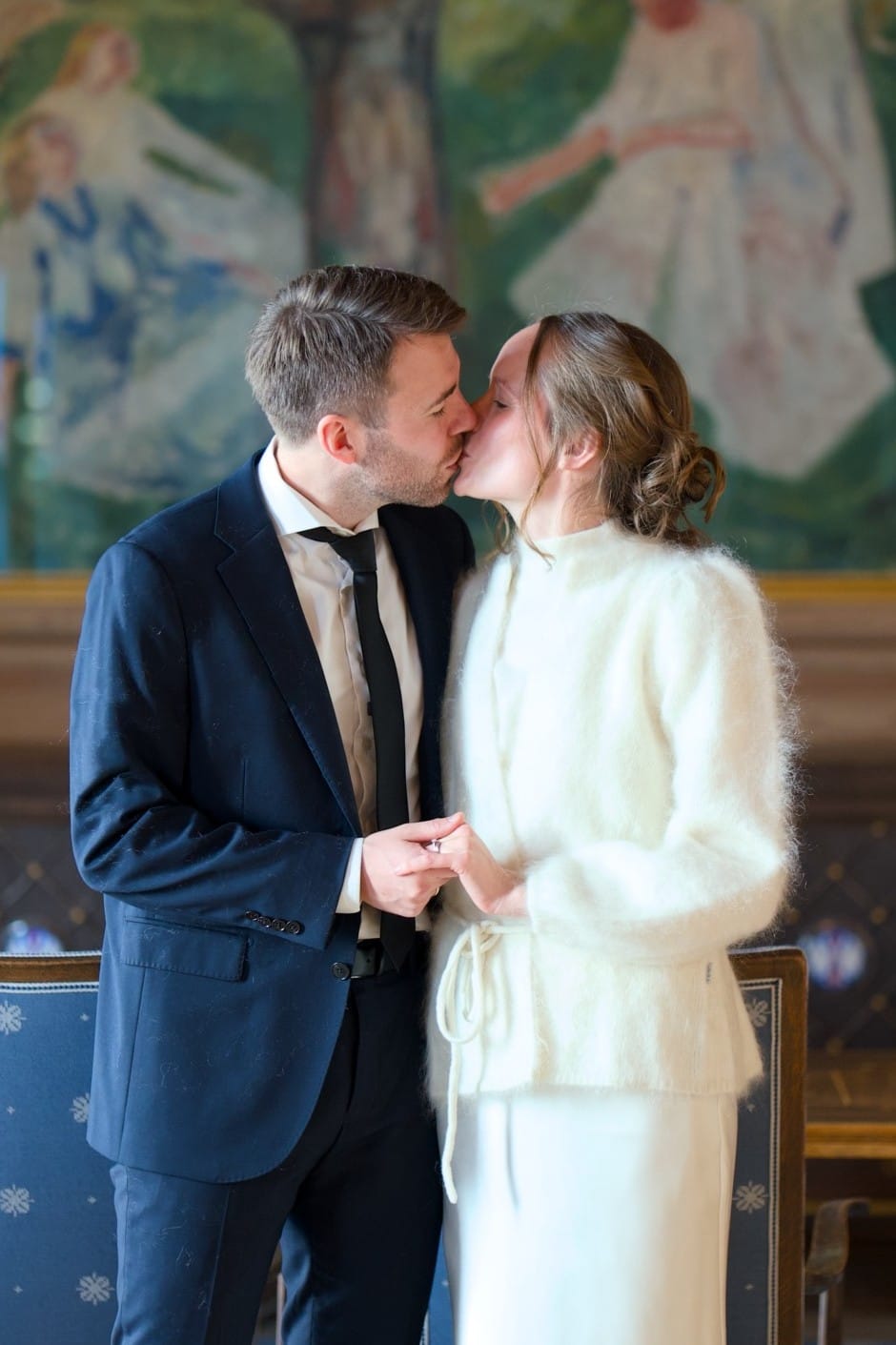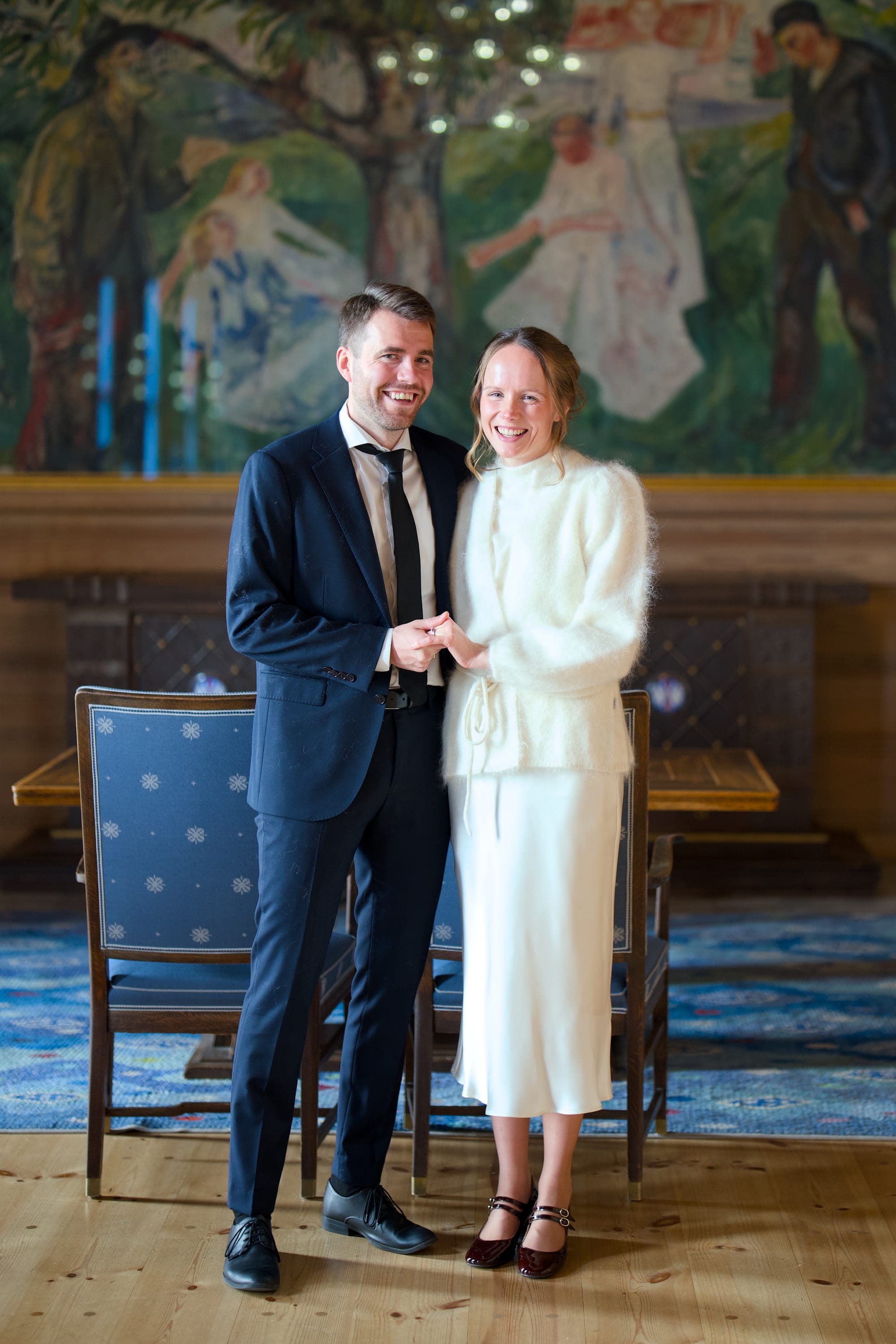 Etter noen år som godt forlovet fant vi til slutt ut hvordan vi ville gifte oss. Hadde vi hatt all tid og penger i verden, ville vi invitert alle dere som mottar dette julekortet. Istedet ble det et intimt bryllup. Vielsen fant sted i Oslo Rådhus etterfulgt av en intim middag på Villa Paradiso Tivoli. Oslo Rådhus opplevdes både høytidelig og koselig. Og middagen inneholdt det beste vi veit, nemlig pizza, venner og familie.